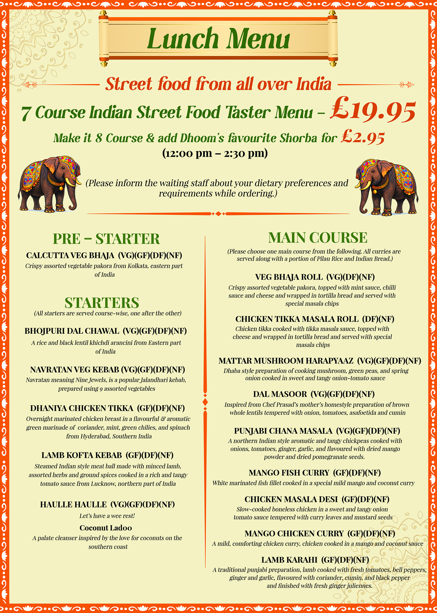 Ala-Carte Menu